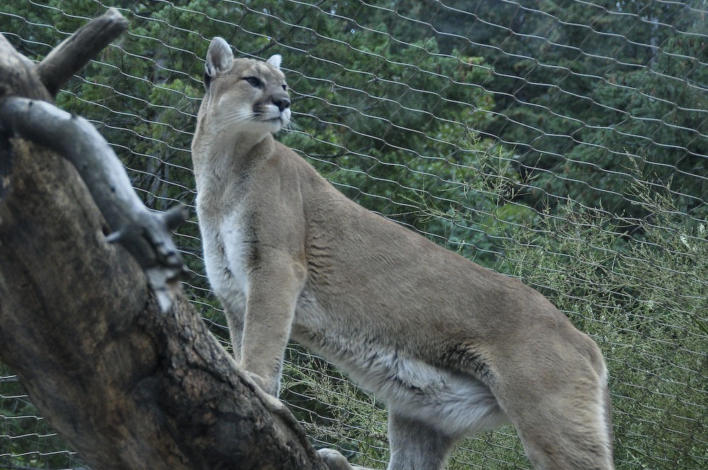 Then we found their mountain lion exhibit, which is very cool and one of favourites. You walk into a cave and then emerge into a glass topped observation cave with (at least) four very active mountain lions strolling around above you. They're a curious blend of lion and maybe leopard; colour of a lion, but more of the body of a leopard. Very sleek, massive tails!