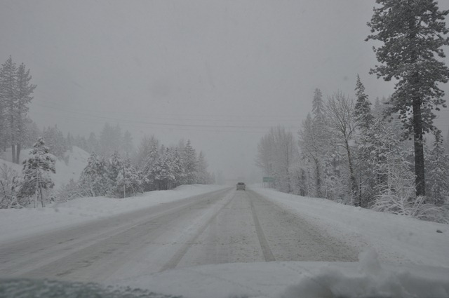Woke bright and early for a big day. Huge snow storm was predicted for Donner Pass today, up to two feet of fresh snow! Starting at 10am. So 10am I was on the road and heading up to the summit. While it wasn't snowing yet it certainly wasn't far off, and by the time I got to Soda Springs it was coming down pretty thick. Almost as soon as I parked a train came through the crossing, so got a quick video of that; hand held, quality could be interesting.